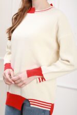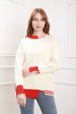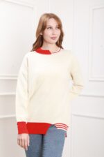 Pulovere 23500 Bej deschis cu rosu