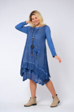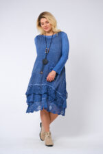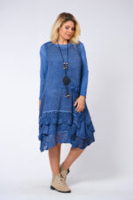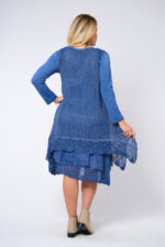 •Materialul prespălat conferă rochiei un aspect vintage distinctiv, aducând o notă de autenticitate și farmec. În plus, acest tip de material este cunoscut pentru că oferă un confort sporit și un aspect îmbătrânit elegant.