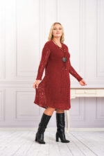Rochie tricotata cu model dantelat, cu interior dublat si superbul accesoriu inclus Material 50% lana 50% acrilic Marimi – bust 110 cm cu lejeritate de pana la 130 cm Lungime 112 (lungime variabila in functie de inaltime, umeri si bust) Comenzi telefonice sau whatsapp : 0767 474 128
