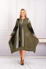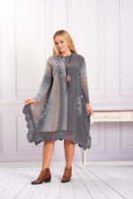 Rochie tricotata cu aplicatii florale brodate si superbul accesoriu inclus 50% lana – 50% acrilic Bust : 110 cm cu lejeritate pana la 135 cm Lungime 110 cm Comenzi telefonice sau whatsapp : 0767 474 128